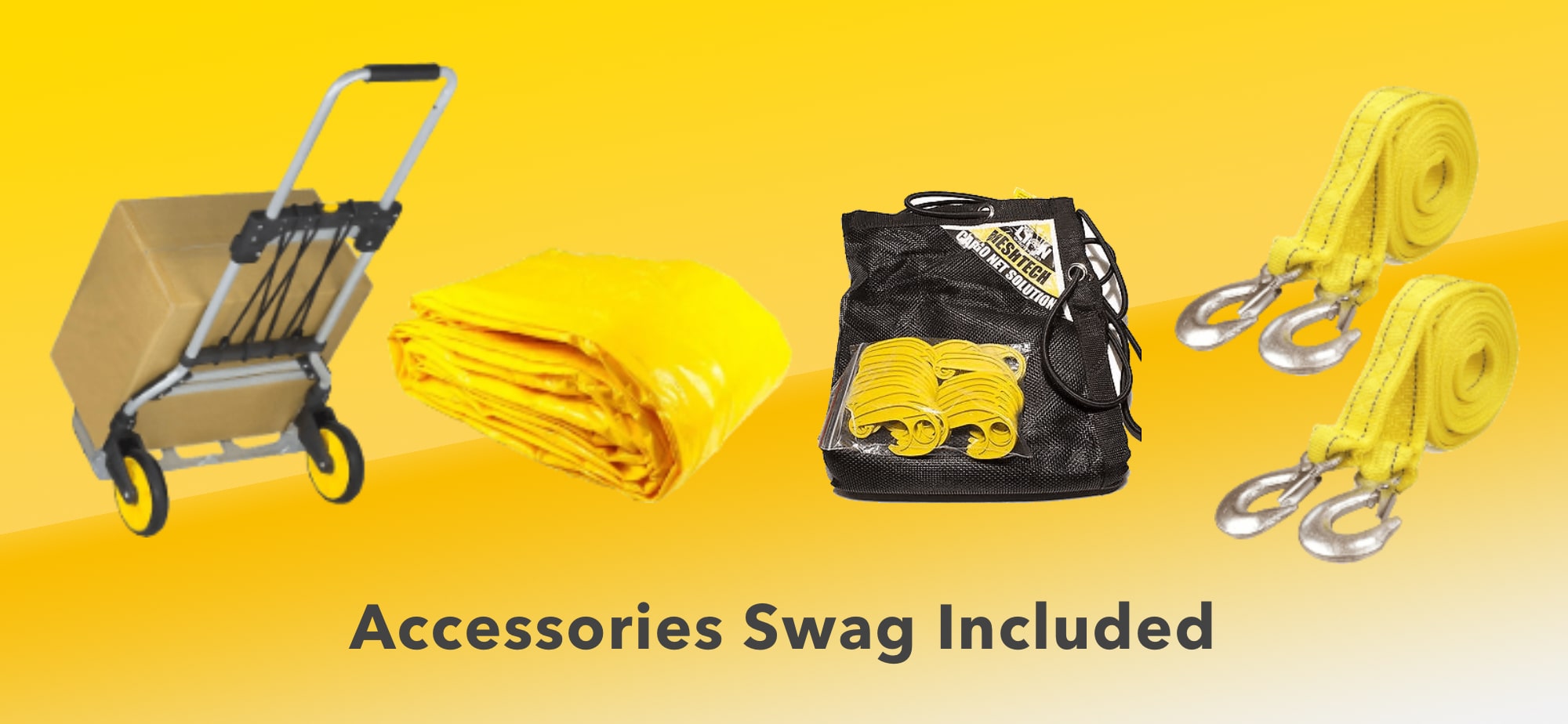 and accessories including Straps, Ropes and a Moving Trolley plus a Rearview Camera for load monitoring.